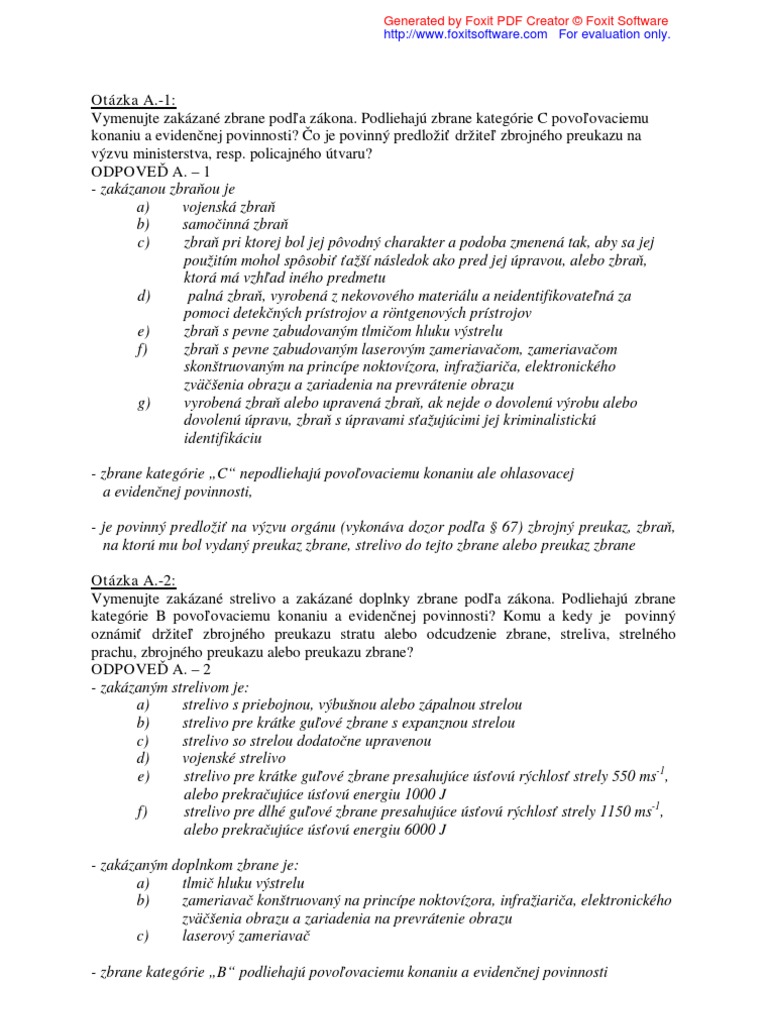 Otázky A Odpovede Na Zbrojný Preukaz 2020. Cez 400 tisíc užívateľov za deň. Predajte ľahko a rýchlo na bazoš.sk.