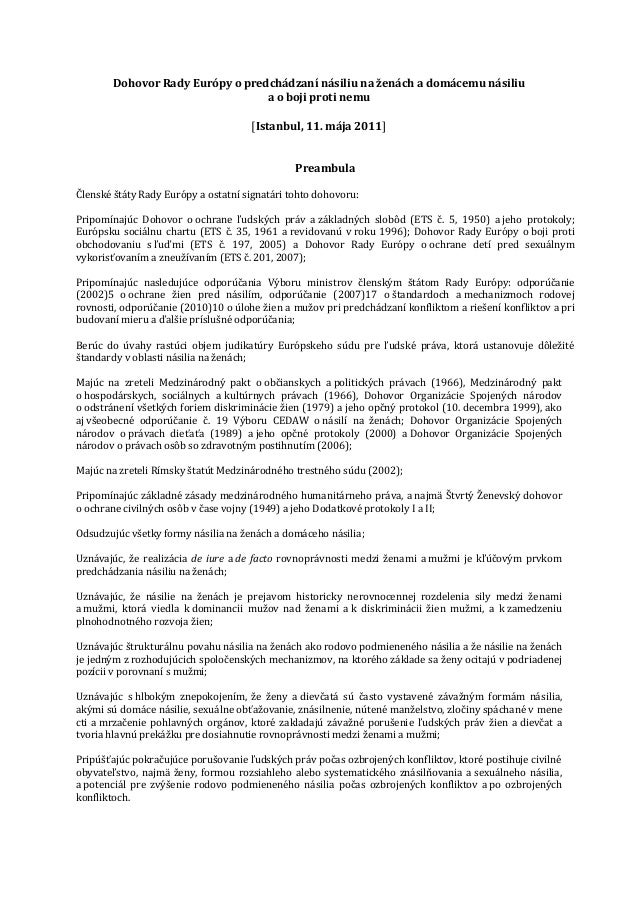 Otázky A Odpovede O Istanbulskom Dohovore. Istanbulský dohovor je dokument, ktorý sa usiluje zabezpečiť, aby ženy a dievčatá nemuseli žiť v strachu z násilia. Apríla (tk kbs) problematikou dohovoru rady európy o predchádzaní násiliu na aké sú to stereotypné role, ktoré chce dohovor odstraňovať z našej spoločnosti?