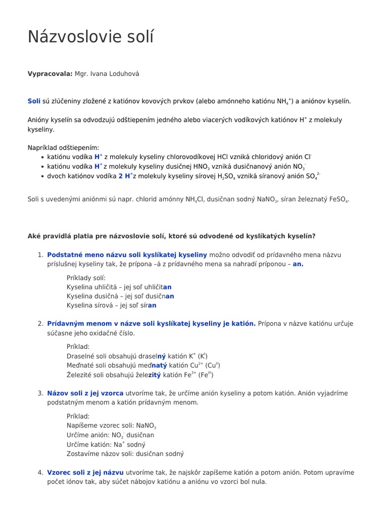 Soli jsou iontové sloučeniny, které vznikají odtržením všech vodíků z molekul kyselin.