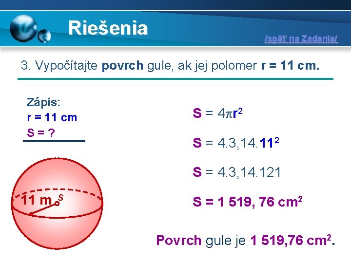 Stredu gule) nie je väčšia ako pevné reálne kladné číslo (t.j. Guľa je rotačné teleso, ktoré vzniklo rotáciou kruhu okolo priamky prechádzajúcej jeho stredom. Na čo sú dobré integrály? Náš web vám umožní ľahký a rýchly výpočet.