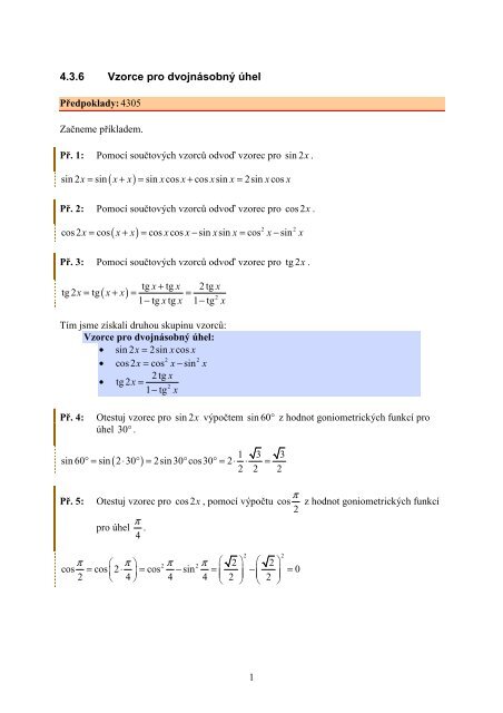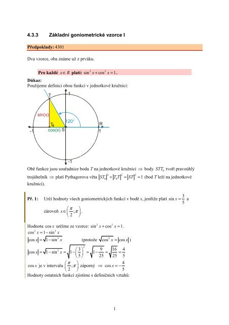 4 3 3 Za Kladna Goniometricka C Vzorce I
